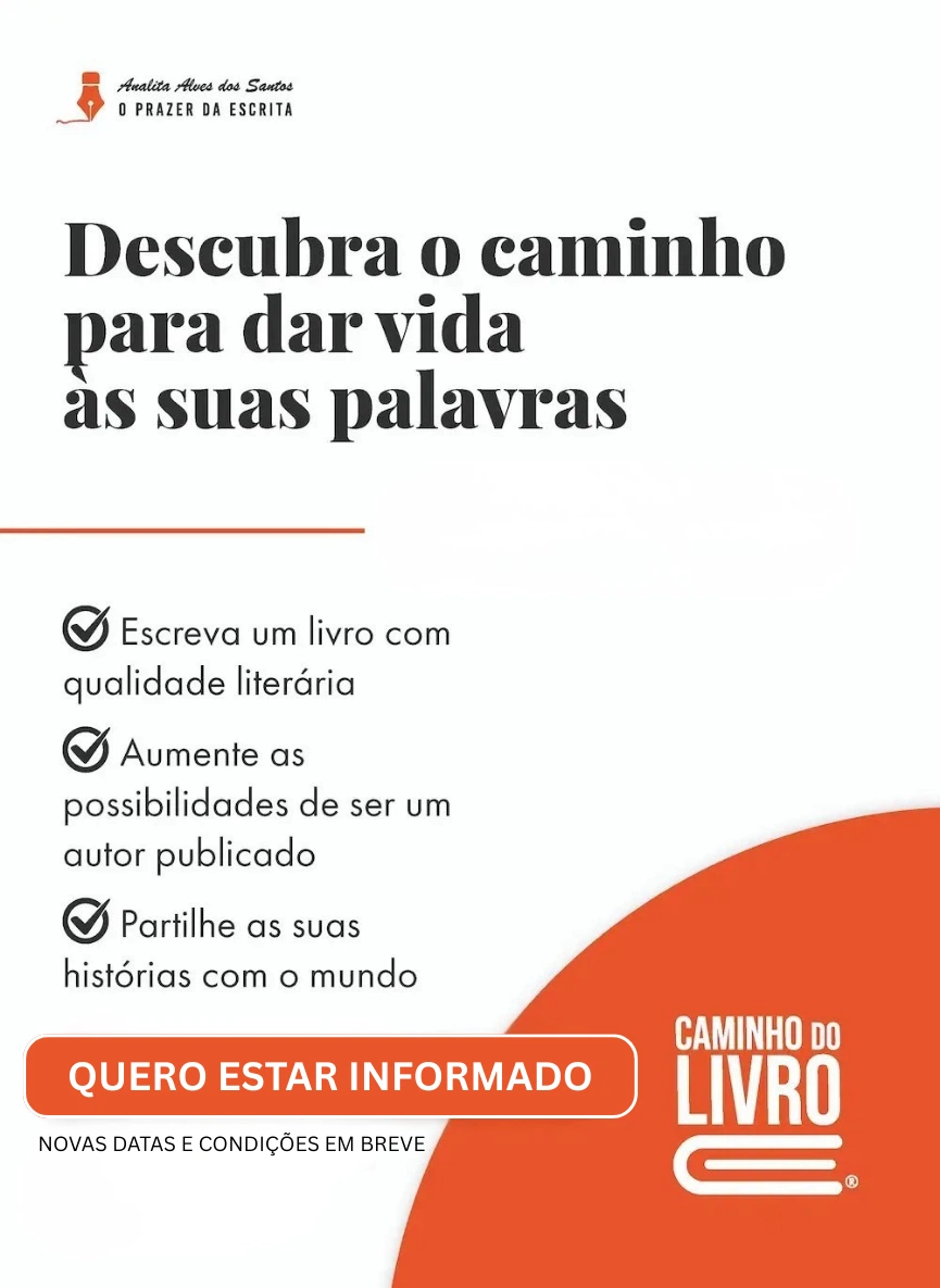 É um programa online inovador que permitirá aos autores estruturar o seu livro com qualidade literária, sólida e coerentemente, de forma a ser apreciado por editoras e leitores. Contemplará as várias fases da criação literária desde a ideia inicial até às opções de publicação, passando pelo marketing de autor.